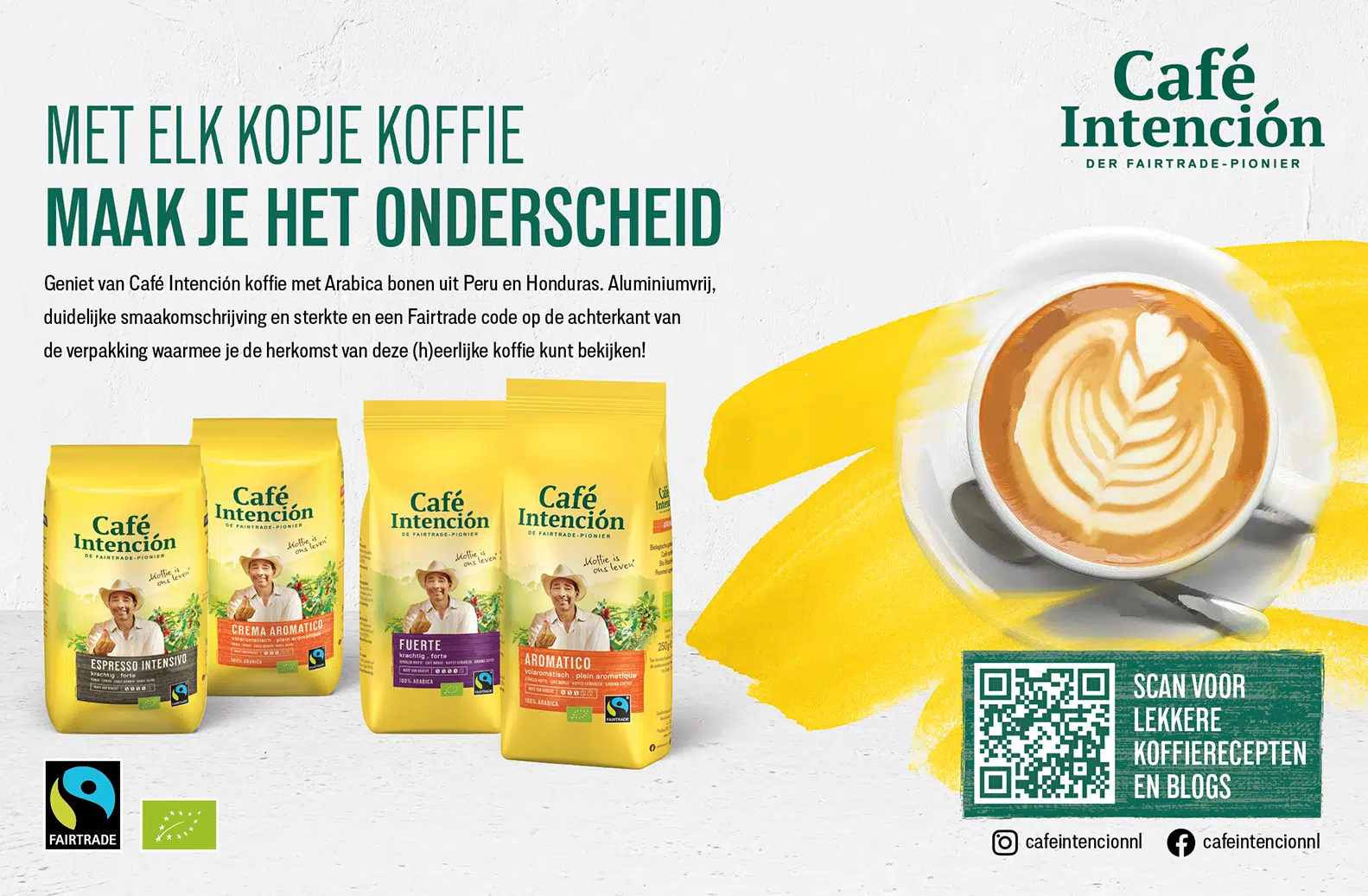 Wij creëerden het toegankelijke concept goeie koffie, goeie zaak. Een subtiele verwijzing naar de uitstekende smaak én dat je, door het drinken van de koffie, bijdraagt aan een betere wereld. Anno 2023 is de nieuwe huisstijl doorvertaald naar diverse communicatiemiddelen zoals de website, signing, contentmarketing en advertising.