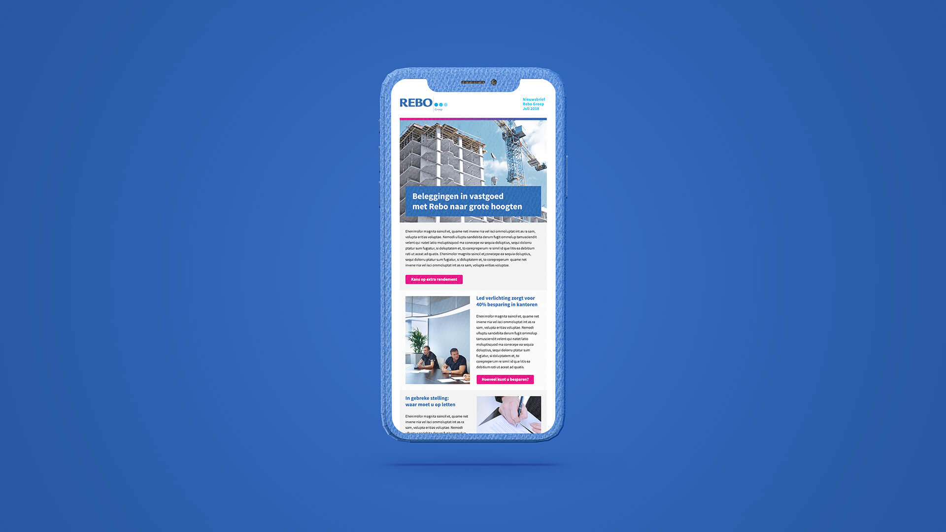 Met 5 diensten verdeeld over 9 kantoren was het voor REBO Groep moeilijk om synergie en een duidelijke lijn in de communicatie materialen te krijgen. Iedere locatie gebruikte een ander bureau en er waren geen vaste huisstijl regels. Tijd voor verandering. Muntz is begonnen met een customer journey sessie per bedrijfsonderdeel van REBO Groep. Hieruit zijn diverse aandachtspunten ontstaan waarop in 2019 gezamenlijk wordt ingezet. Zo zal elke dienst op elke locatie hetzelfde doel voor ogen hebben, staat de communicatielijn en rode draad voor het gehele jaar vast en zal de herkenbare REBO Groep uitstraling overal op dezelfde manier toegepast worden. Van advertentie, tot nieuwsbrief. Van DM tot de after sales!